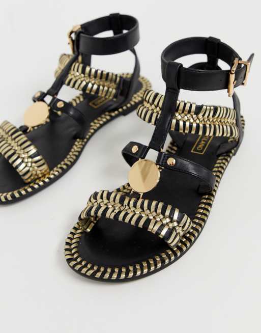 River Island woven gladiator sandal with gold details in black Very well made.