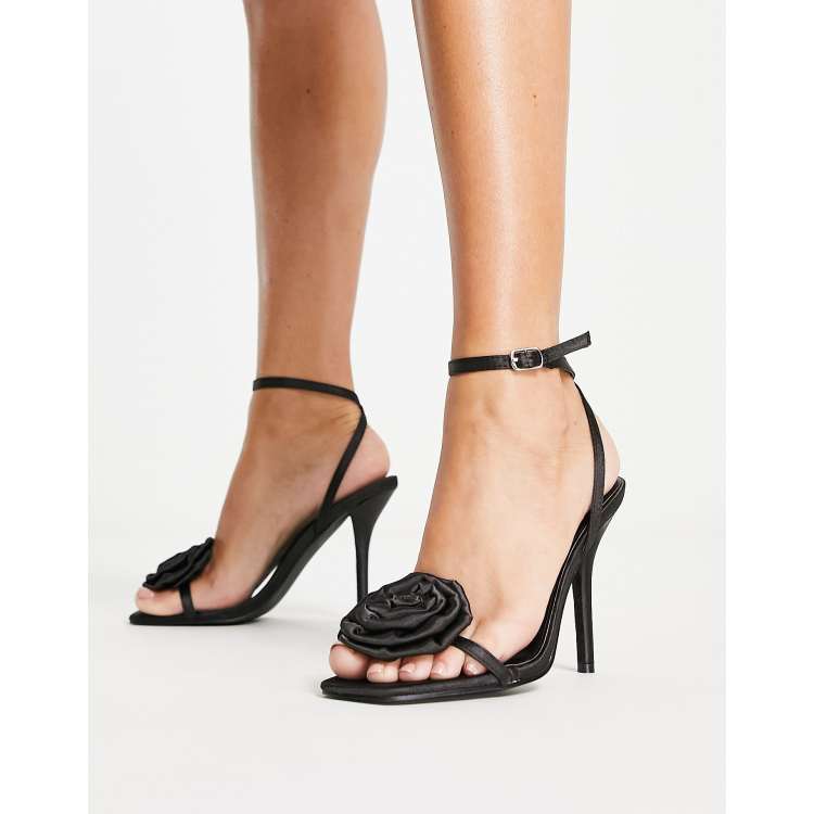 Public Desire Ruru mid heel satin sandals with rose detail in Very well made.