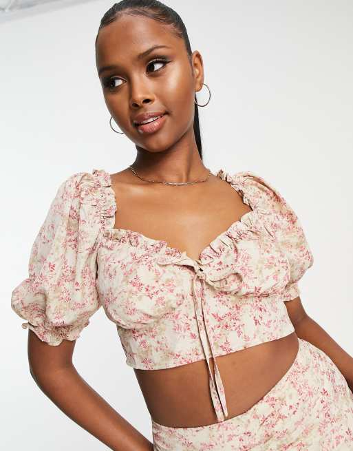 Missguided co ord milkmaid top with ruched detail in stone floral Very well made.