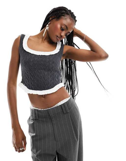 Motel ruffle edge knitted corset top in charcoal grey ASOS Very well made.
