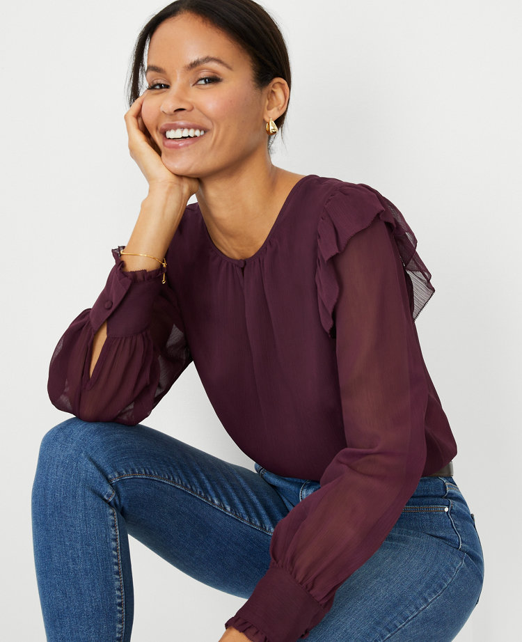 Shoulder Ruffle Blouse Very well made.