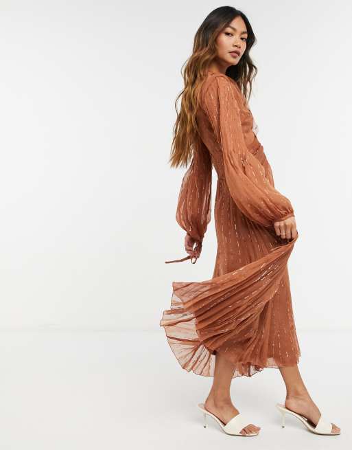 Rust Woven Bandeau V Bar Gathered Hip Midi Dress PrettyLittleThing Very well made.