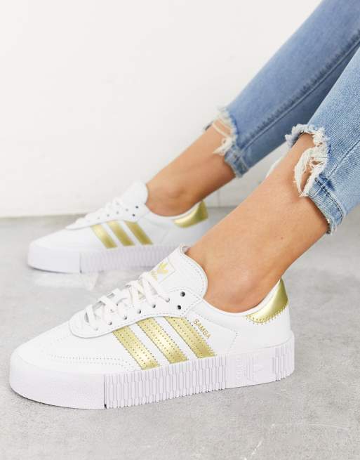 adidas Sambarose Wei e Sneaker mit goldfarbenen Streifen ASOS Very well made.