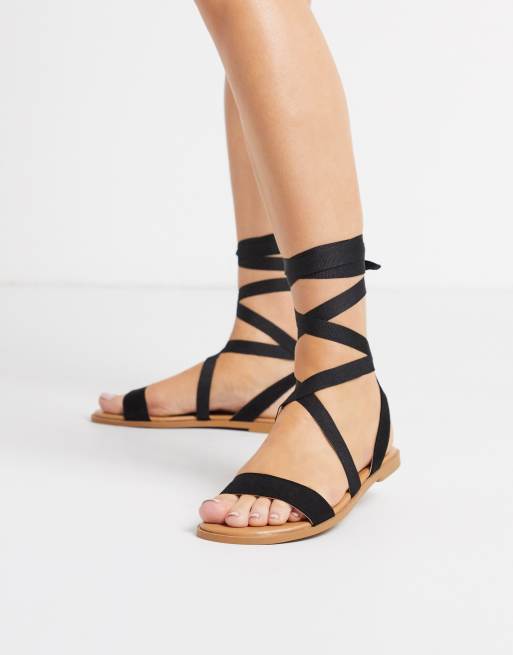 ASOS DESIGN Sandales plates avec liens nouer Noir Very well made.