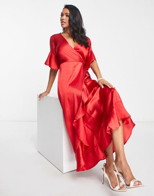 Satin V Neck Ruched Midi Wrap Dress SOSANDAR M S Very well made.