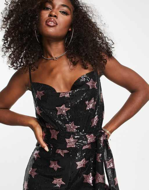 Style Cheat exclusive cowl neck wide leg 70s jumpsuit in pink star sequin Very well made.