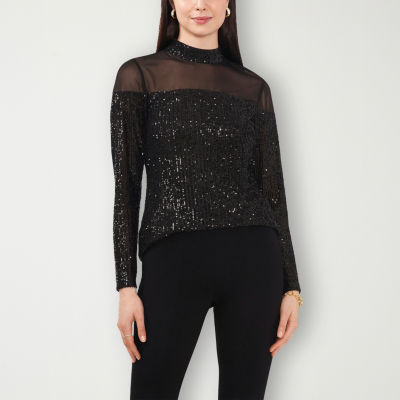 Sam And Jess Sequin Womens Mock Neck Long Sleeve Blouse Color Very well made.