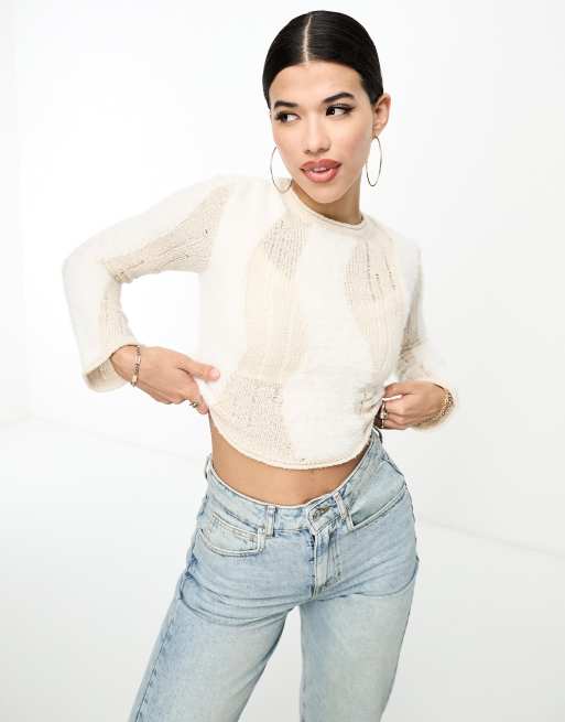 Cream Sheer Cropped Sweater Top Very well made.