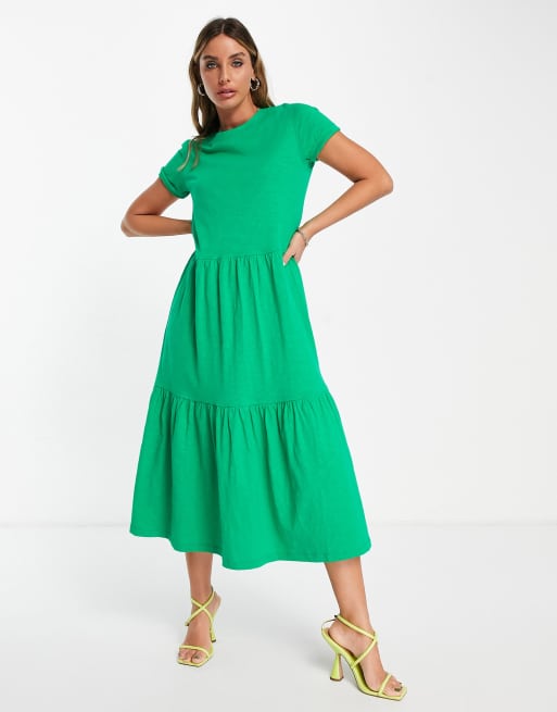 Whistles short sleeve tiered midi T shirt dress in green Very well made.