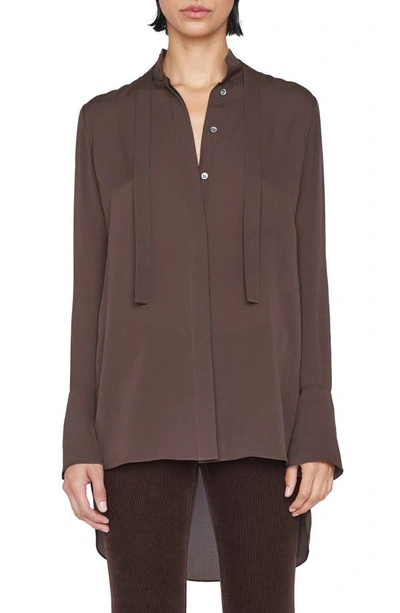 Tie front Silk High low Blouse In Espresso Very well made.