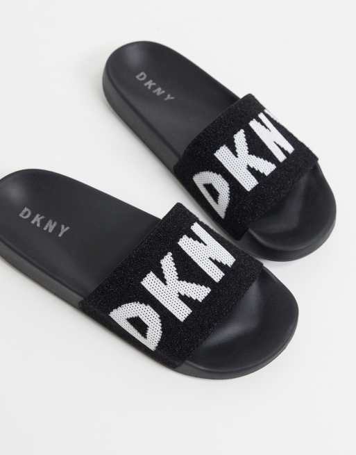 DKNY Zax Slippers met stoffen band en logo in zwart ASOS Very well made.