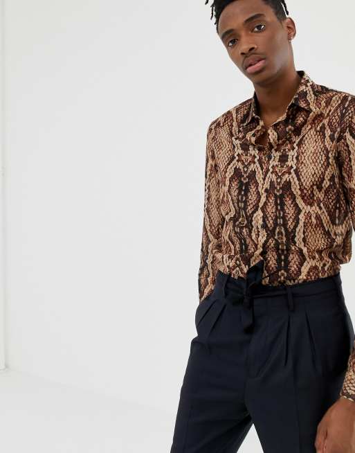 Snakeskin Shirt Men Brown Snake Print Casual Shirts Spring Funny Very well made.