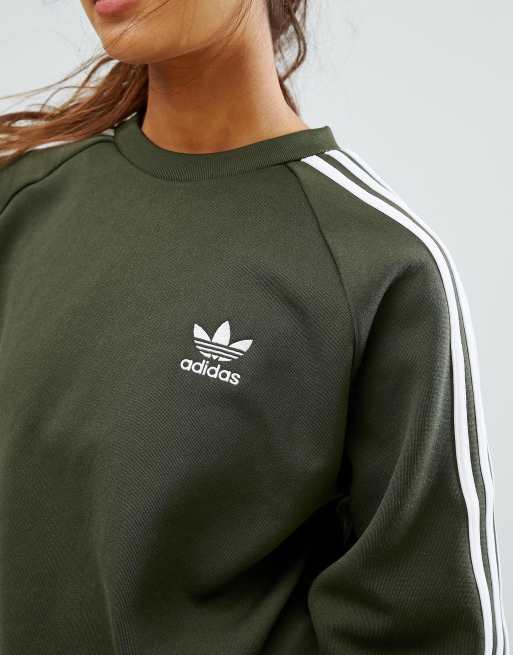 adidas Originals Khaki Three Stripe Boyfriend Sweatshirt Very well made.