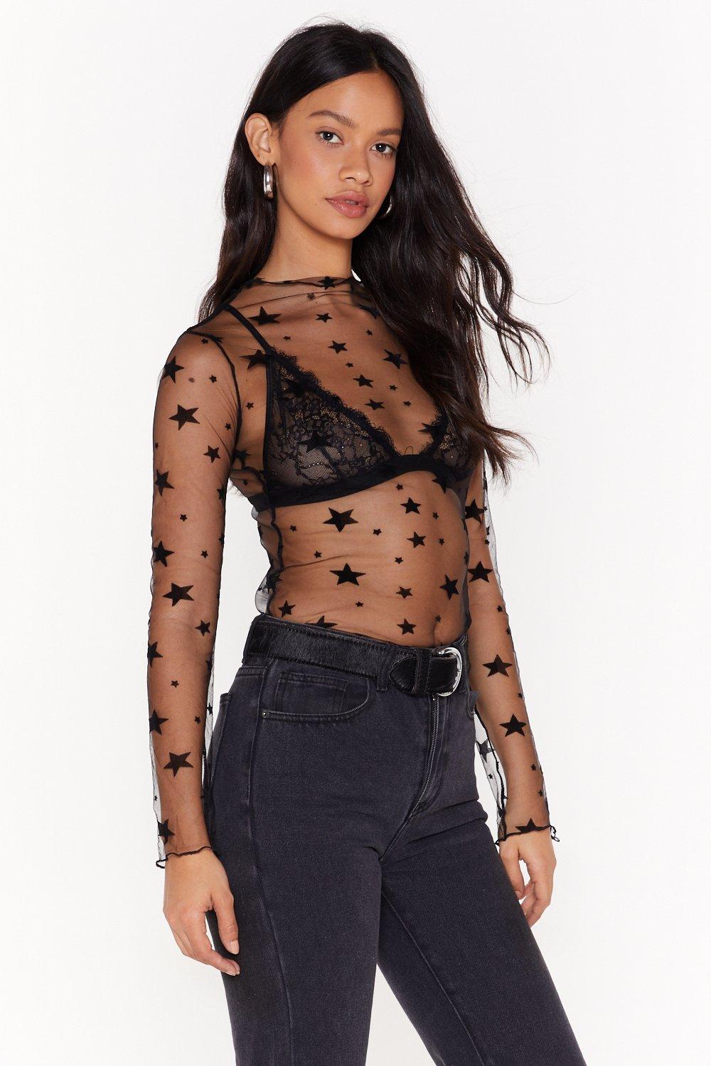 SHEIN Star Print Sheer Mesh Crop Top Crop tops Mesh crop top Very well made.