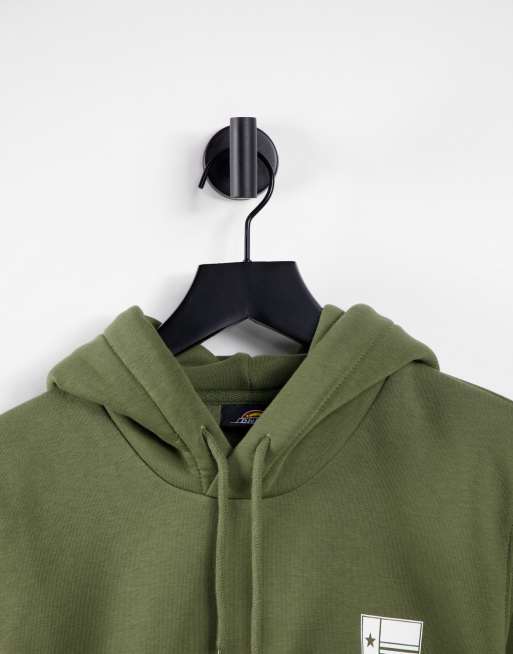 Sudadera verde militar con capucha y estampado en la espalda Very well made.