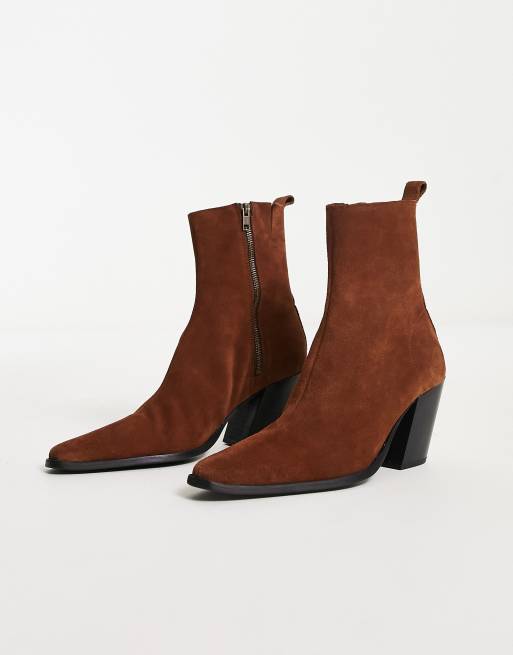 ASOS DESIGN heeled chelsea boots with angled heel in tan suede ASOS Very well made.