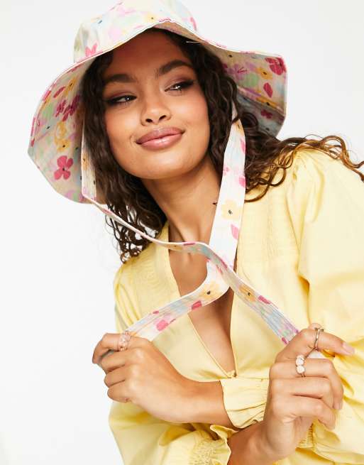Vero Moda sun hat with ties in cream floral Very well made.