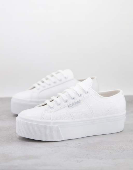 Superga 2790 leather flatform trainers in white croc ASOS Very well made.