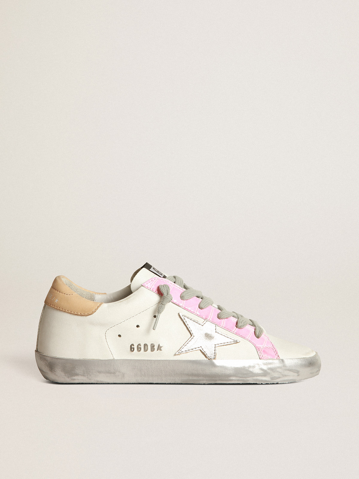 Super Star sneakers with silver laminated leather star and pink Very well made.
