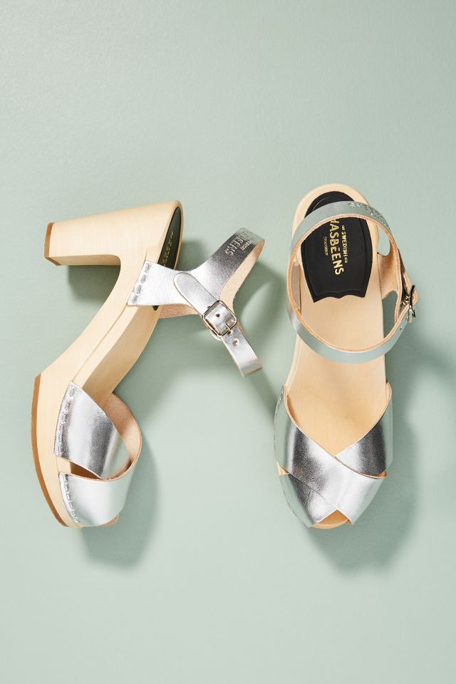Swedish Hasbeens Silver Platform Strappy Clog Sandals Size 37 EUR 6.5 US Very well made.