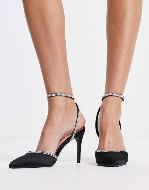 New Look Chaussures en satin et strass talon mi haut avec bride cheville Noir Very well made.