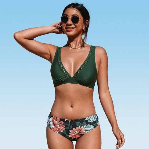 Women s Mid Waisted Bikini Swimsuit Floral Back Hook Bathing Suit Very well made.