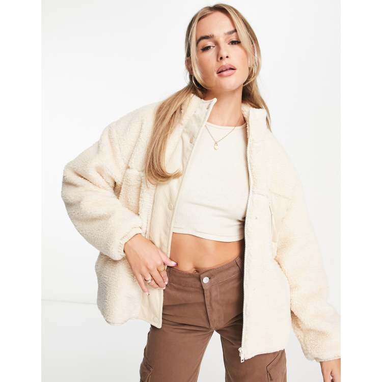 Pull Bear oversized teddy sherpa jacket with pocket detail in sand Very well made.