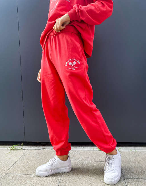 ASOS DESIGN roll waist oversized jogger with tennis logo in red Very well made.