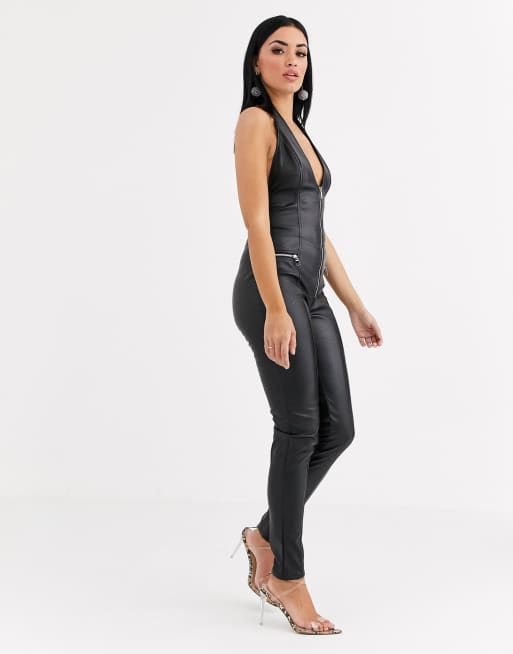 Tiger Mist zip through pu jumpsuit in black Very well made.
