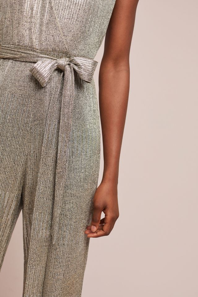Adrianna Papell Metallic Crinkle Jumpsuit Taupe Pink at John Very well made.