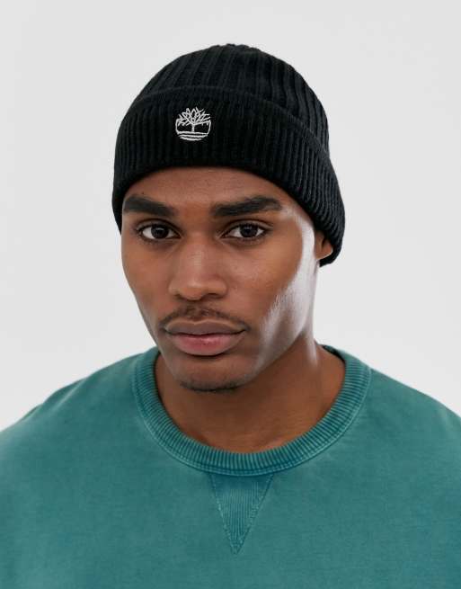 Timberland small logo ribbed beanie in black Very well made.