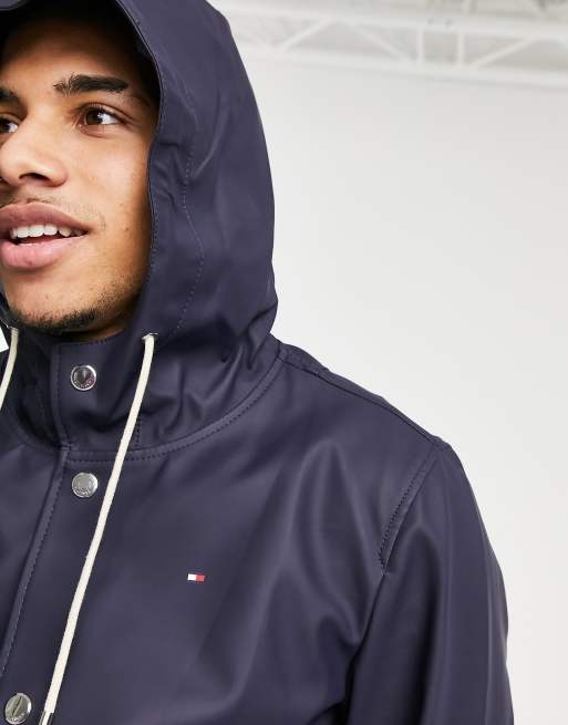 Tommy Hilfiger Men s Colorblocked Logo Rain Slicker Jacket Mens Very well made.