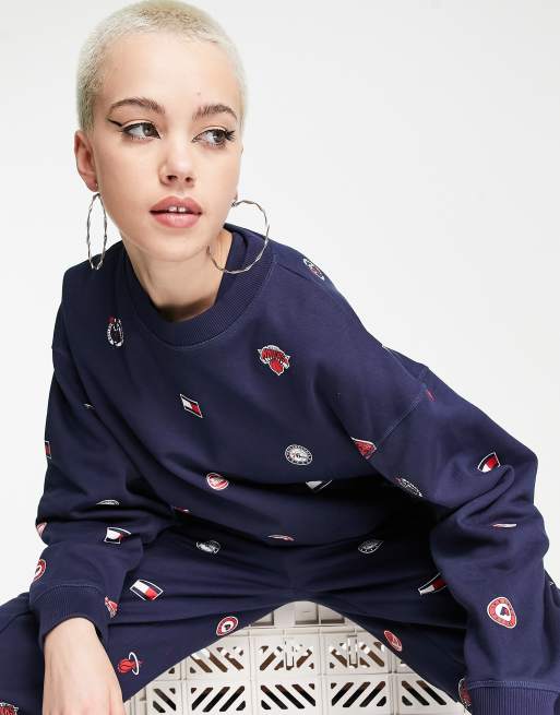 Tommy Jeans x NBA all over print crew neck sweatshirt in navy part of a set Very well made.