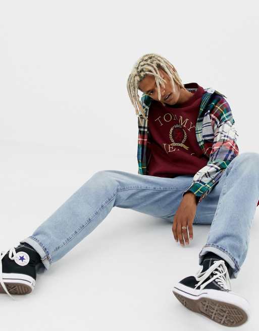 Tommy Jeans 6.0 limited capsule crew neck sweatshirt with crest logo in burgundy Very well made.