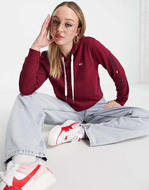 Tommy Jeans cropped flag icon hoodie in burgundy Very well made.