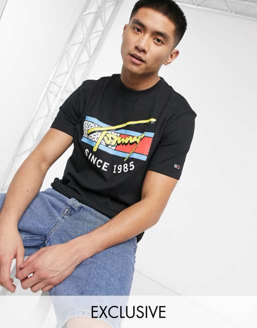 Tommy Jeans Exclusive to Asos t shirt with neon retro signature chest print in black Very well made.