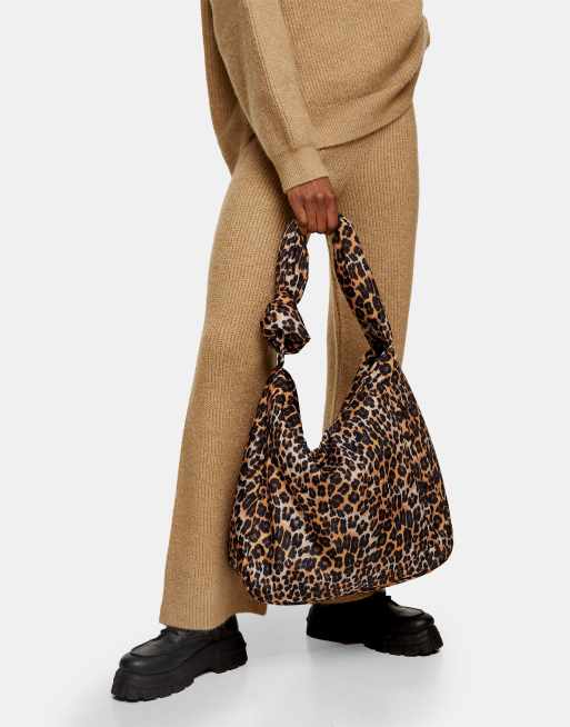 Topshop sustainable knotted nylon hobo bag in true leopard Very well made.