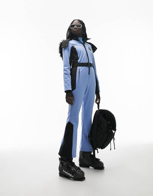 Topshop Sno ski suit with faux fur hood belt in blue Very well made.