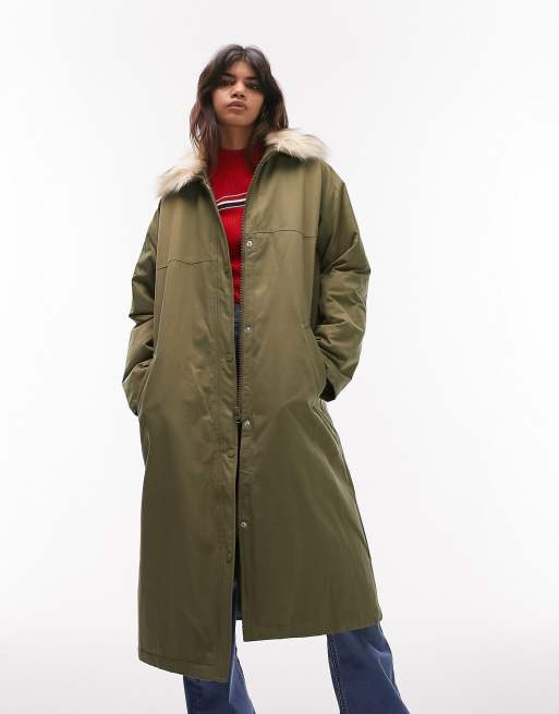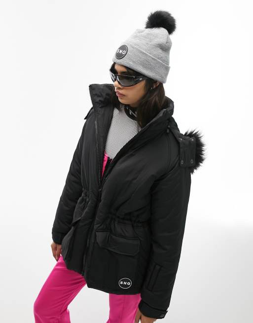 Topshop Sno ski parka coat with faux fur hood in black Very well made.