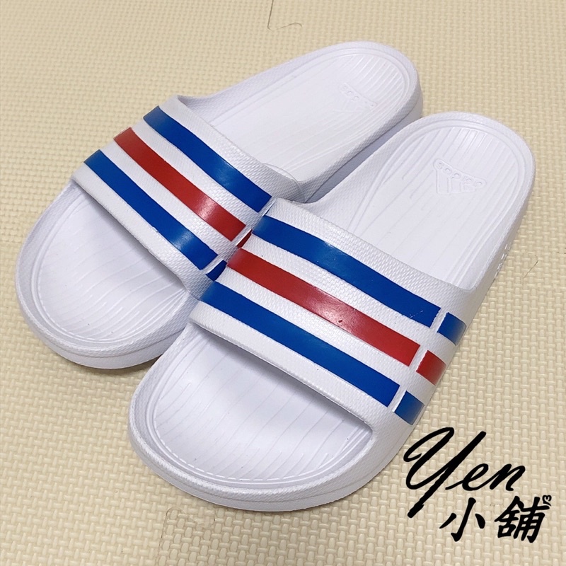 adidas Duramo Slides White Blue Red U43664 KICKS CREW Very well made.