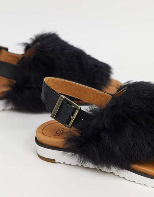 Buy the UGG Holly Fur Slingback Sandals Black Leather Fluffy Very well made.