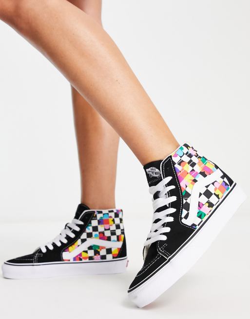 Vans SK8 Hi Baskets montantes fleurs et damier Noir et Very well made.