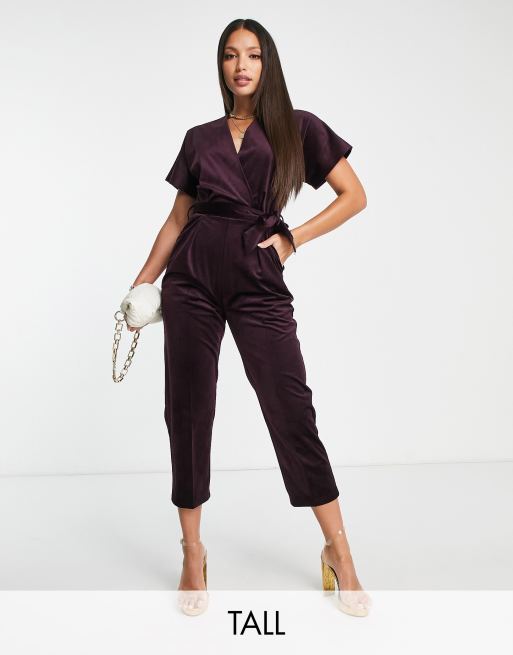 Closet London Tall velvet wrap jumpsuit in plum ASOS Very well made.