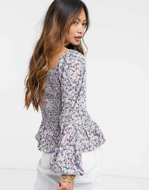 Vero Moda shirred blouse with peplum in purple floral Very well made.