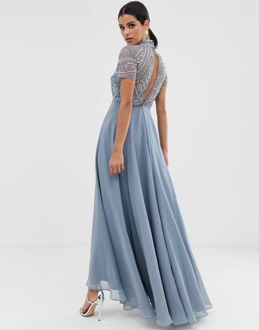 ASOS DESIGN Tall maxi dress with short sleeve embellished bodice Very well made.