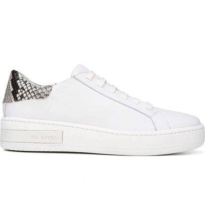 Via Spiga Rylen Platform Sneaker Porcelain Leather w Faux Snakeskin Size 7.5 Very well made.