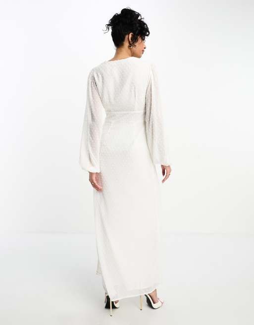 NA KD balloon sleeve button front maxi dress in off white Very well made.