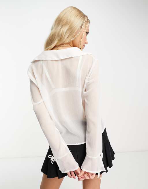 Sheer tie front top Very well made.