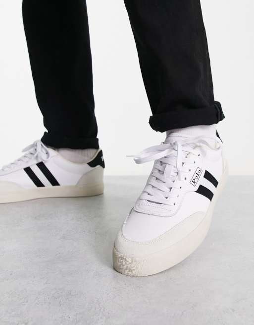 Polo Ralph Lauren leather suede court vulc trainer in white black stripe Very well made.