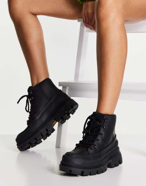 CAT Hardwear chunky sole leather walking boots in black Very well made.